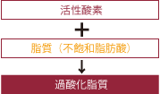 体内や体外にある脂類(不飽和脂肪酸)と活性酸素とが反応して、体内の脂を酸化し、過酸化脂質(悪玉コレステロール)を作り出します。この過酸化脂質は活性酸素に比べて力は弱いのですが、白いに濁った液状の脂で、尿から体外に排出されず、組織や臓器の表面に付着して侵入していきます。長時間かけて臓器や組織を破壊していくという、性質の悪い化学物質なのです。