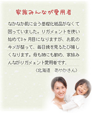 一度使ったらやめられない!リガメェント化粧品は、その多くがリピーターのお客様です。